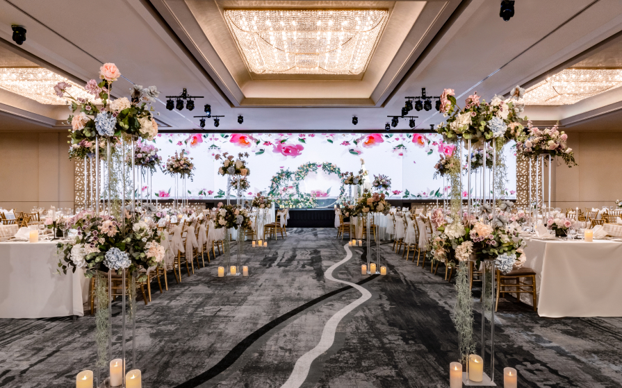 The lofty elegance of Imperial Ballroom is complemented by the uniquely designed four-tiered amphitheatre-style ballroom with impressive LED walls and stunning views of Orchard Road from 35 levels high.
